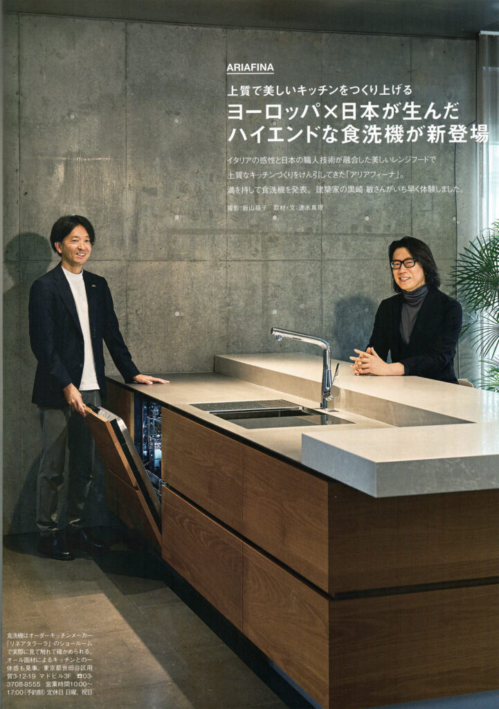 リネアタラーラは、上質なキッチン空間を追求する建築家やデザイナーに向け、オーダーキッチンの新たな可能性を提案してきました。イタリアの美学と日本の職人技を融合したブランド「アリアフィーナ」から、このたび待望のハイエンド食洗器が登場。雑誌『MODERNLIVING(モダンリビング)281号』では、「上質で美しいキッチンをつくりあげるヨーロッパ×日本が生んだハイエンドな食洗器が新登場」と題し、その魅力が紹介されています。